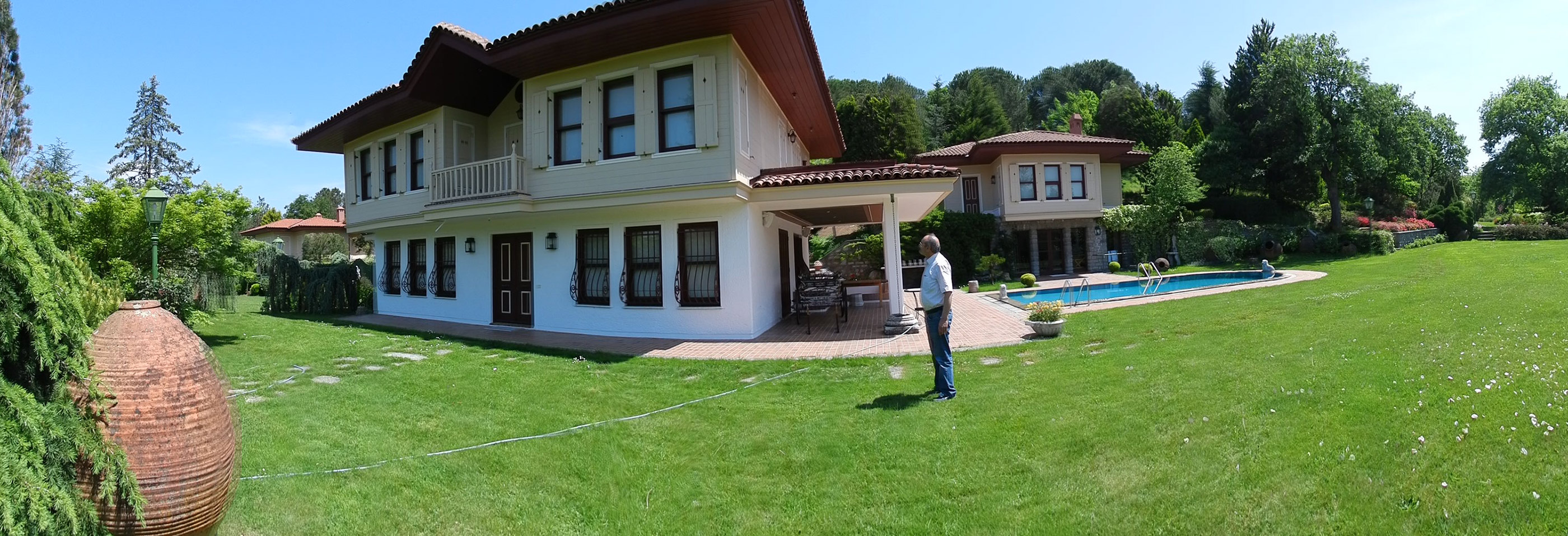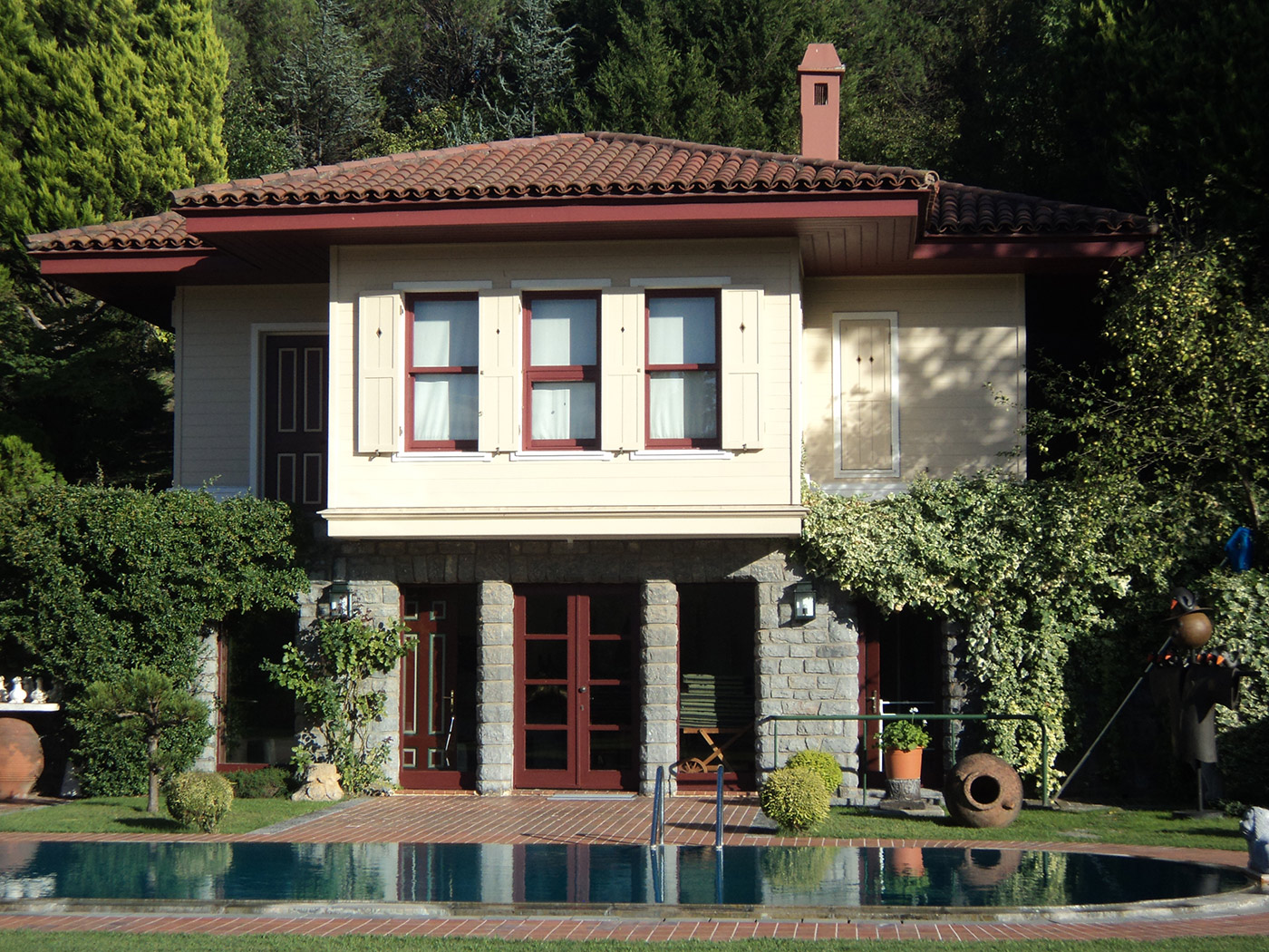 Evin iç ve dış kapıları, dış cephe kplamaları, pergola ve sundurmaların tamamı özel el işçiliği ile benzersiz olarak üretilmiştir.