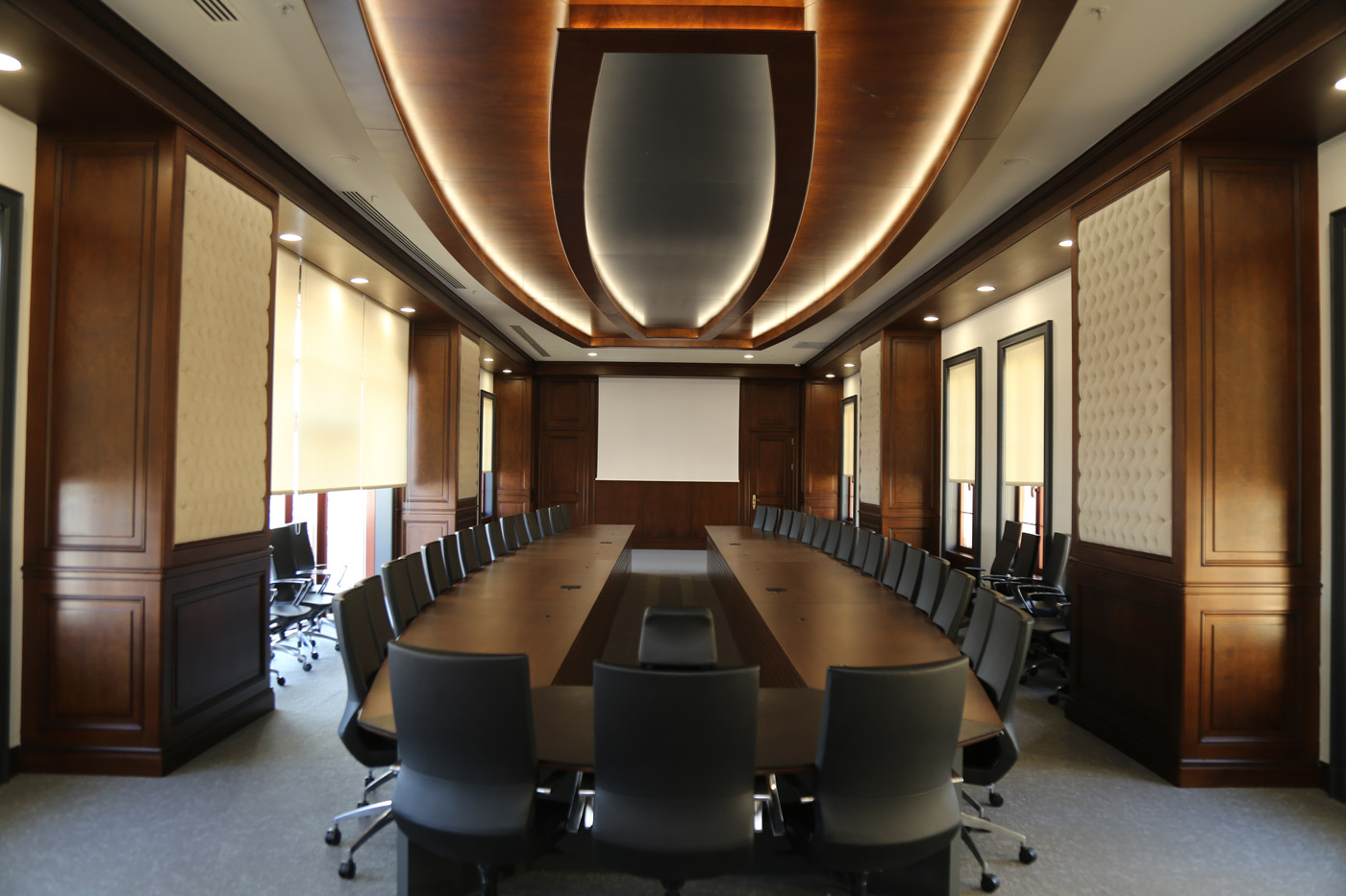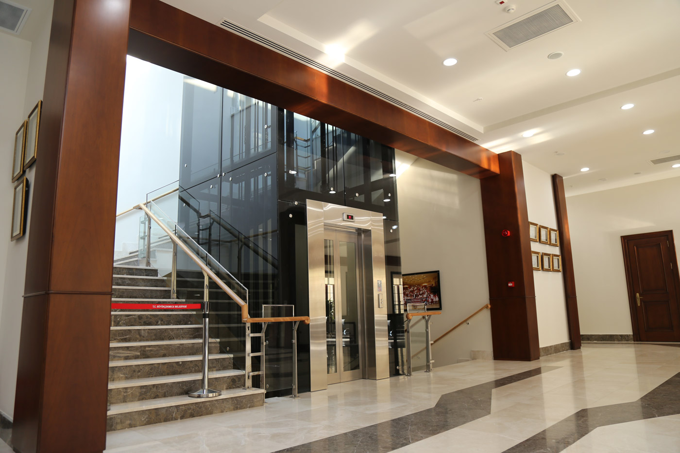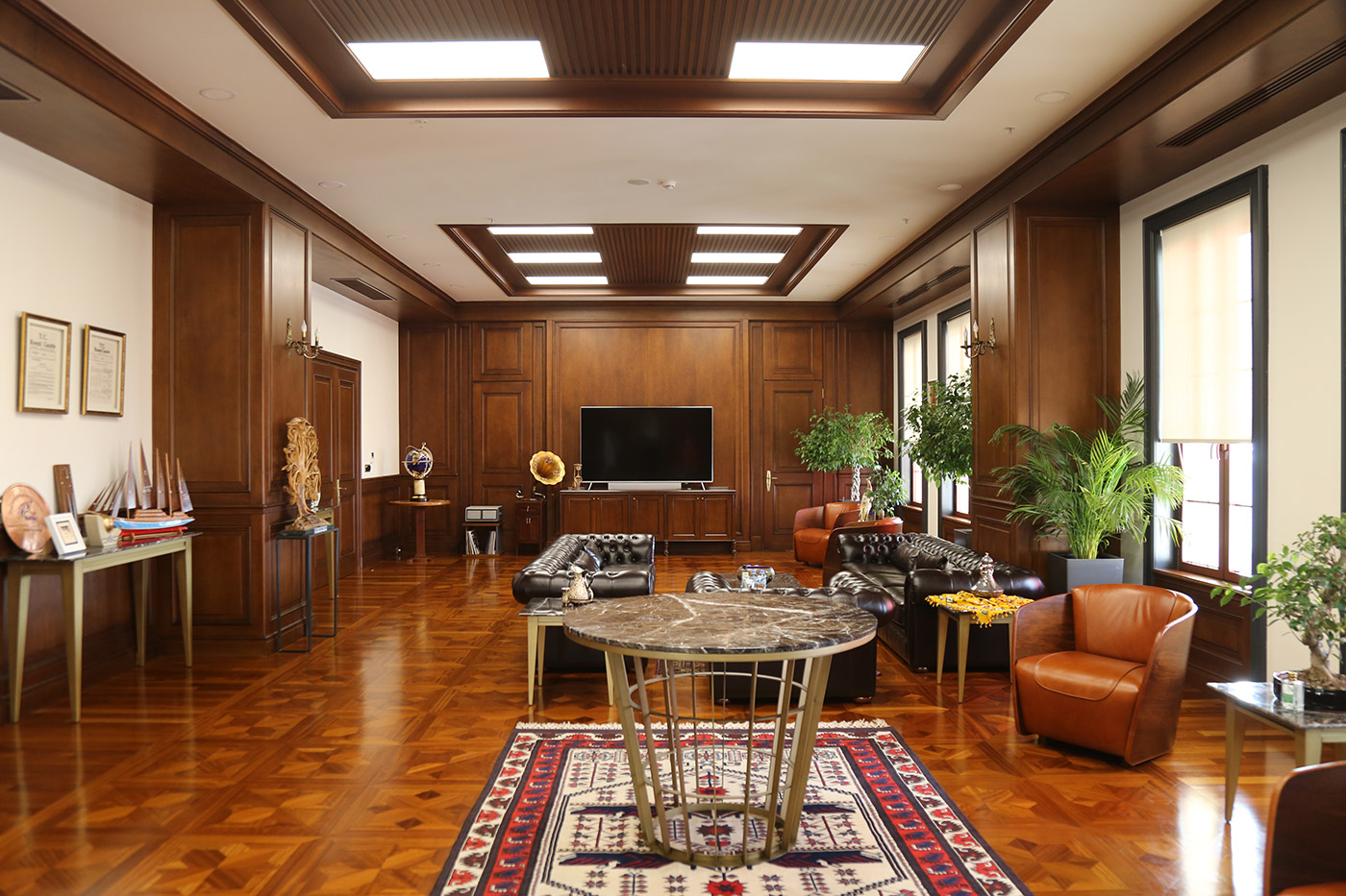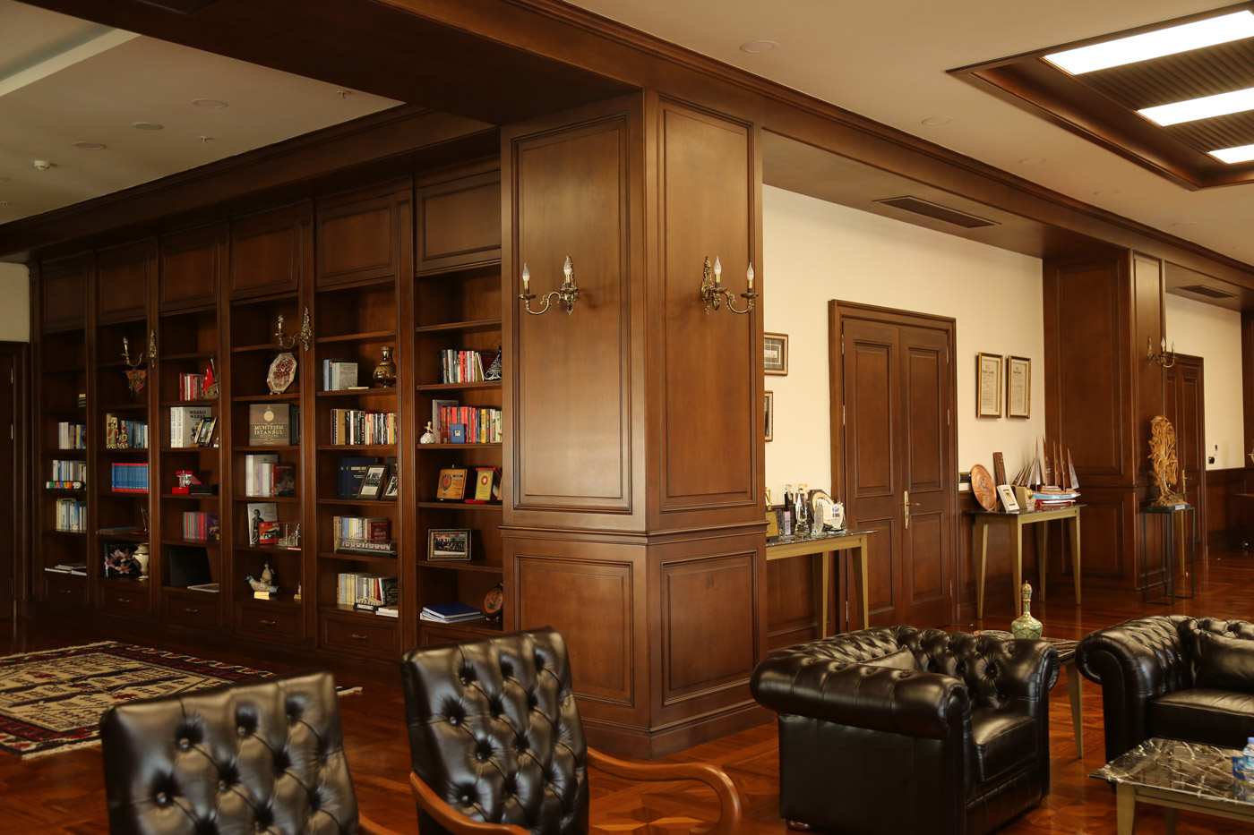 Belediye binası başkanlık katında bulunan makam odasıbekleme salonu ve toplantı odası ahşap çalışmaları tamamen Ağaç İşleri Atölye'mizde üretilmiş, ve uzman ekibimizce uygulaması yapılmıştır.