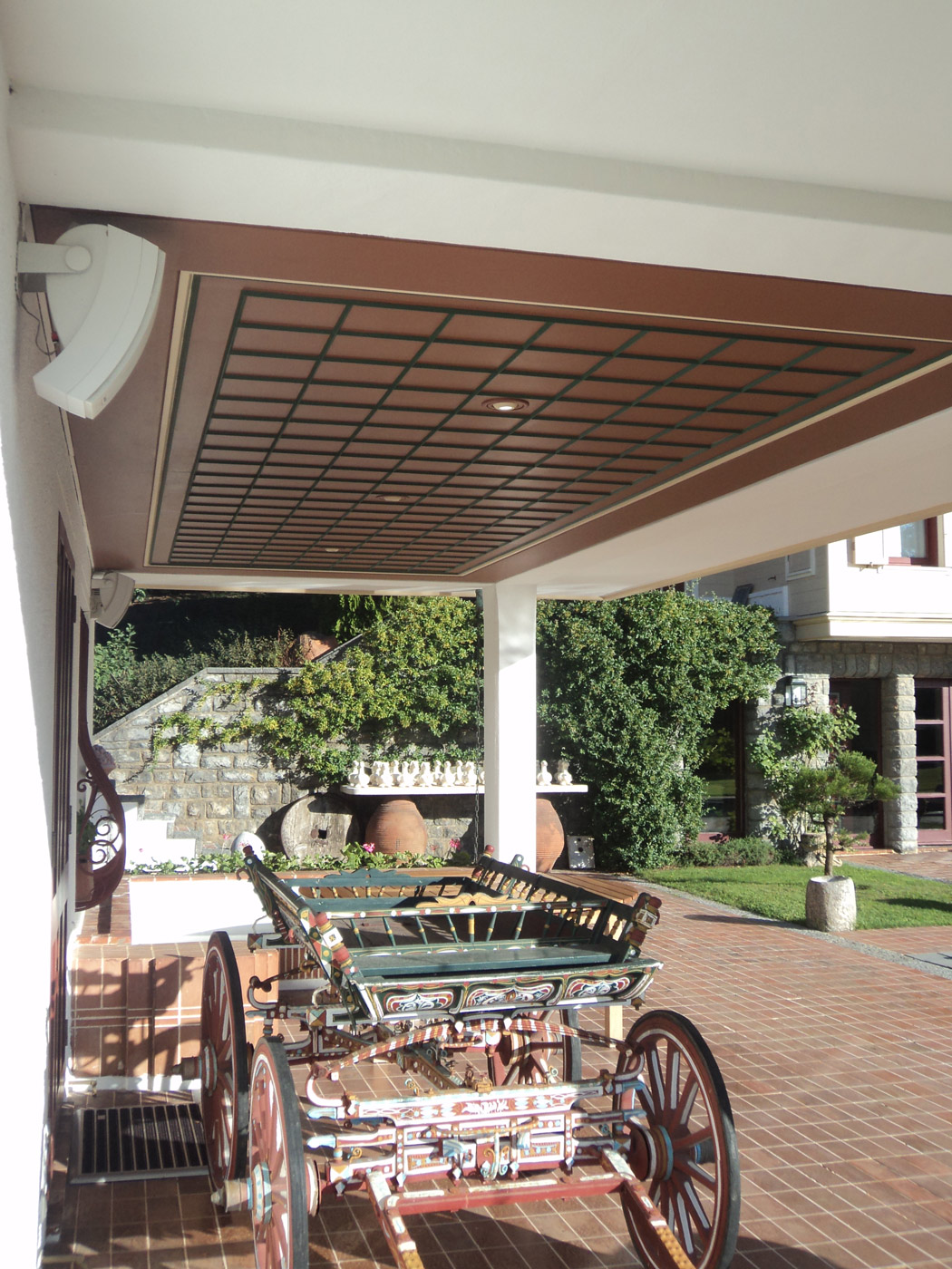 Evin iç ve dış kapıları, dış cephe kplamaları, pergola ve sundurmaların tamamı özel el işçiliği ile benzersiz olarak üretilmiştir.